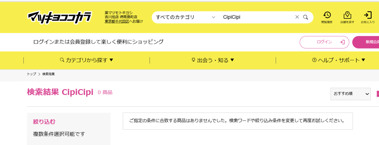 CipiCipiのグリッターは、マツキヨで売ってるとの情報は見つかりませんでした