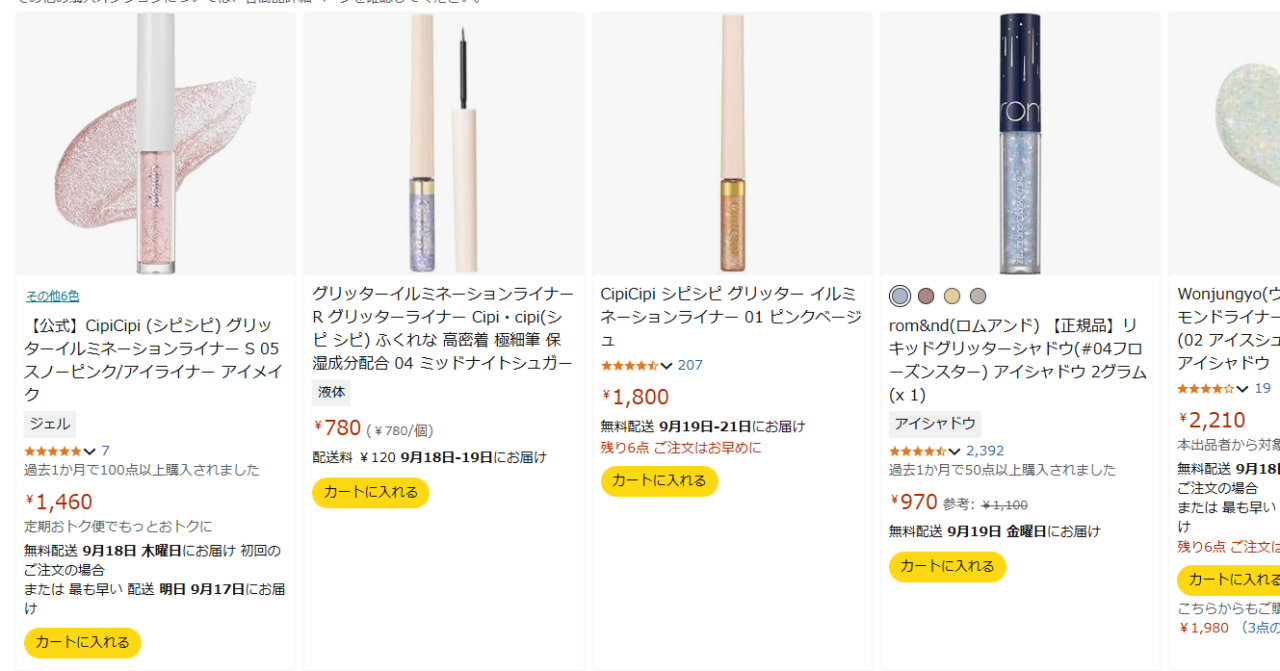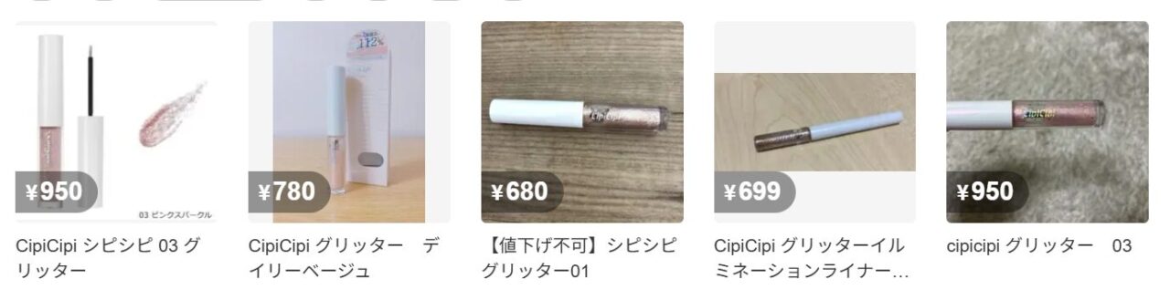 CipiCipiのグリッターはメルカリなどのフリマアプリでも購入できます。未使用のものが出品されていたりするので、お得に購入できるかもしれません。