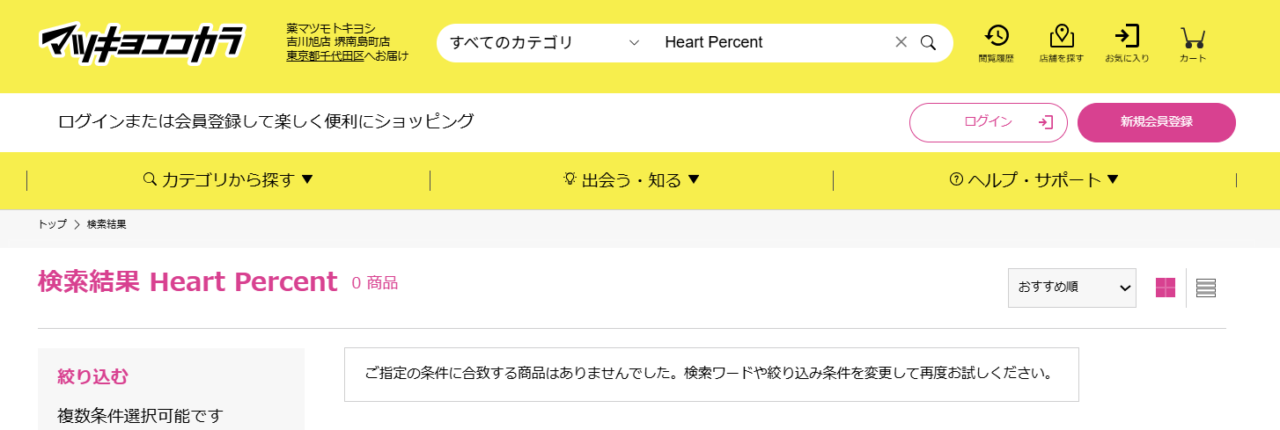 Heart Percentは、マツキヨで売ってるとの情報は見つかりませんでした。