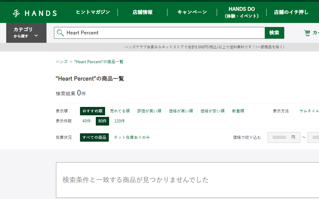Heart Percentは、ハンズで売ってるとの情報は見つかりませんでした。