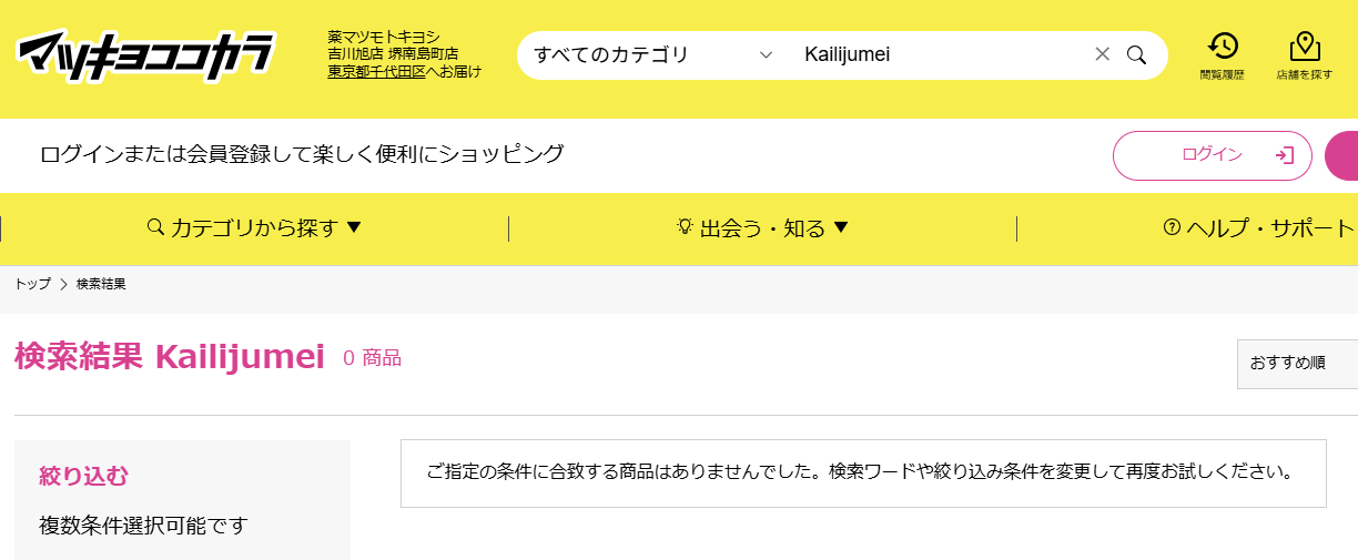 Kailijumeiのリップは、マツキヨで売ってるとの情報は見つかりませんでした。